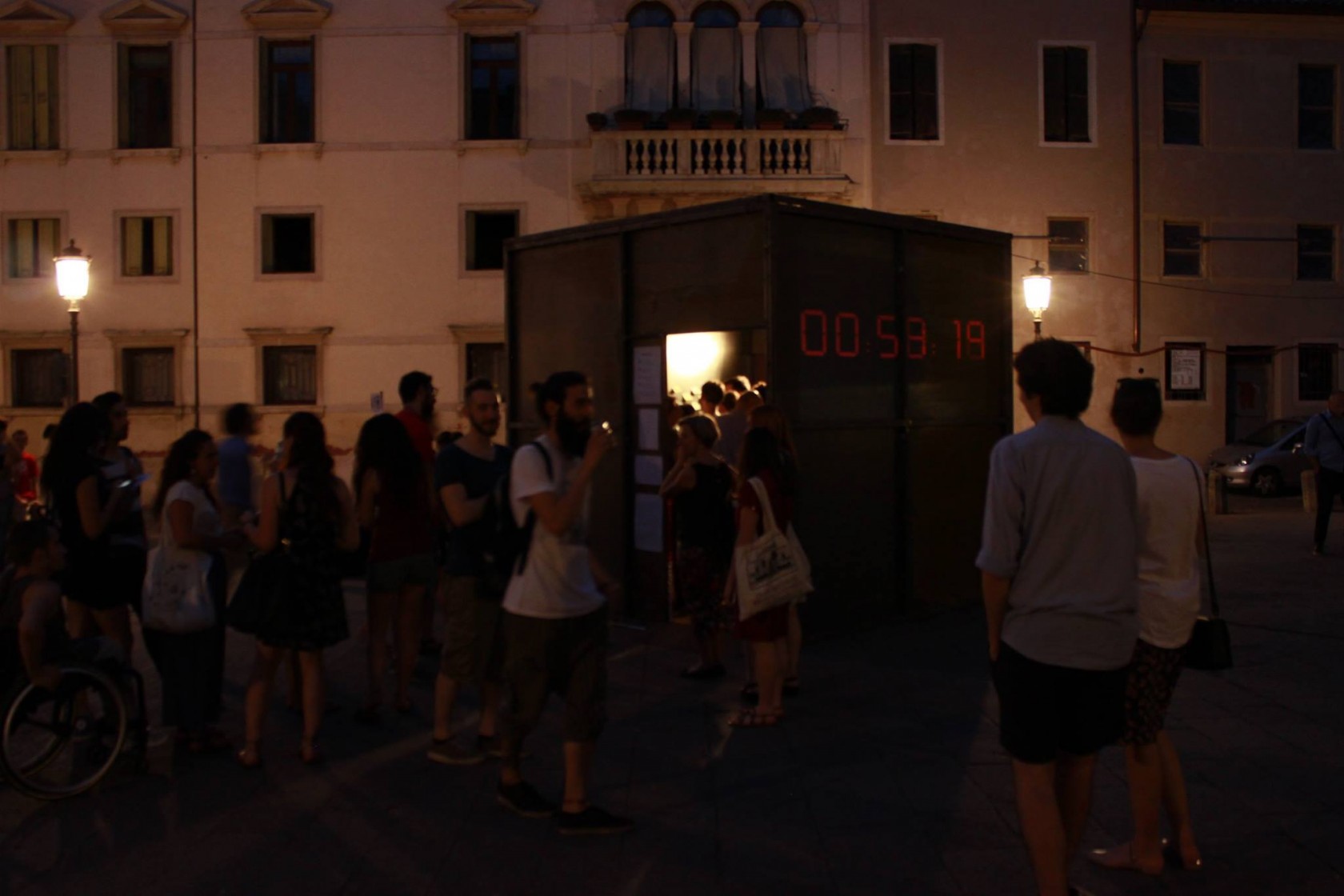 After the feedback received during the event in Venice, we decided to have fewer artists and increased the duration of each exhibition. This time we also had a timer projected on the side of the cube, in order to make it clear to the audience when each group finished their exhibition. Again there was no critic selection, but we asked for a motivation letter.