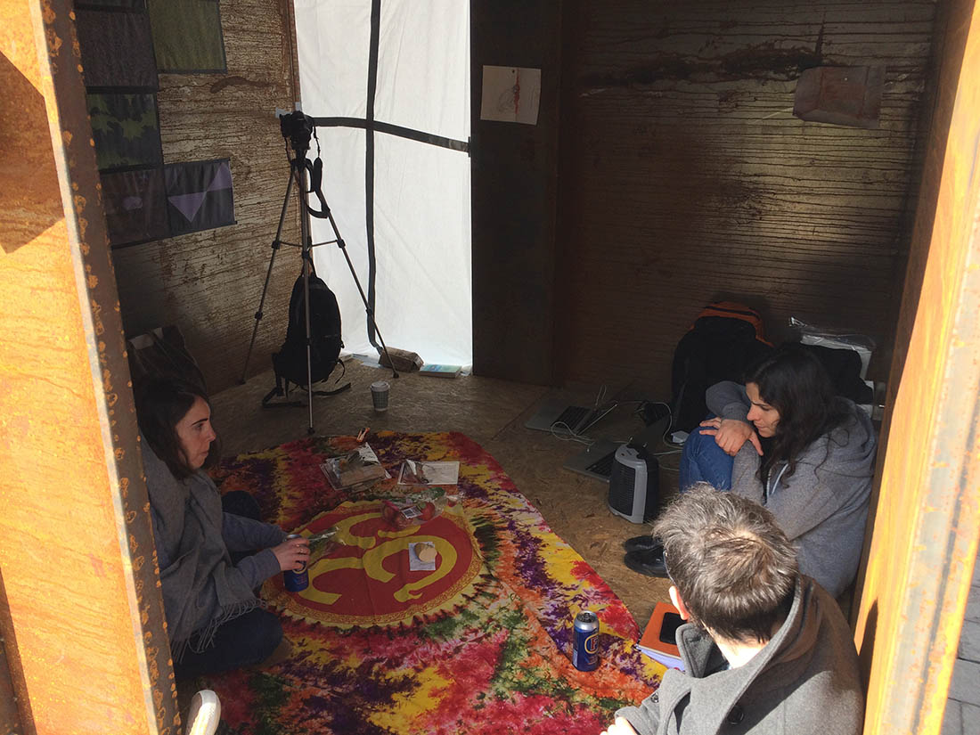 In the London edition, the cube became a one week residency for artists investigating the meaning of inhabit a space now and how to inhabit our cube with art. This time artist were chosen on the based of their draft answer to the topic. During the residency, Alessio Mazzaro member of the collective delivered a few days workshop on collaborative practices -to foster collaboration between the selected artists- and on the different meaning of dwelling and home.