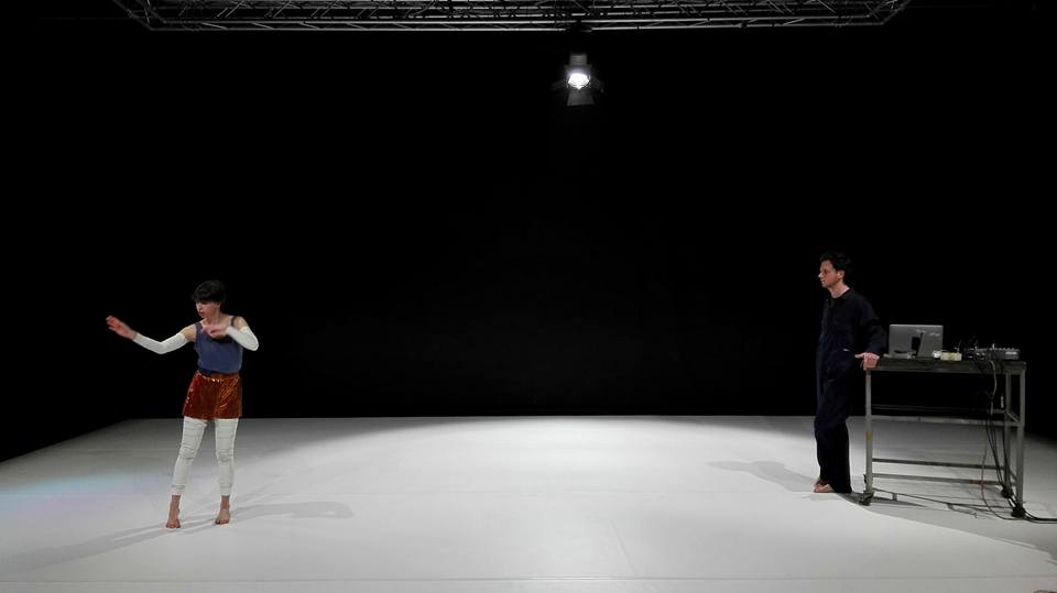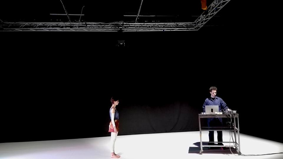 you are going to witness an experiment. The attempt made by a dancer and a composer, to create a language through the relationship between gestures and sounds. The test and study then, of this language. The alphabet in use is a set of gesture-sound connections, where every movement comes as an answer to the sound created by the dancer. As in every scientific experiment, space and boundary conditions are given. Its result instead, depends always on external factors and live circumstances. Thereby, the main part of the piece is an improvisation and it develops differently at every try of the experiment.