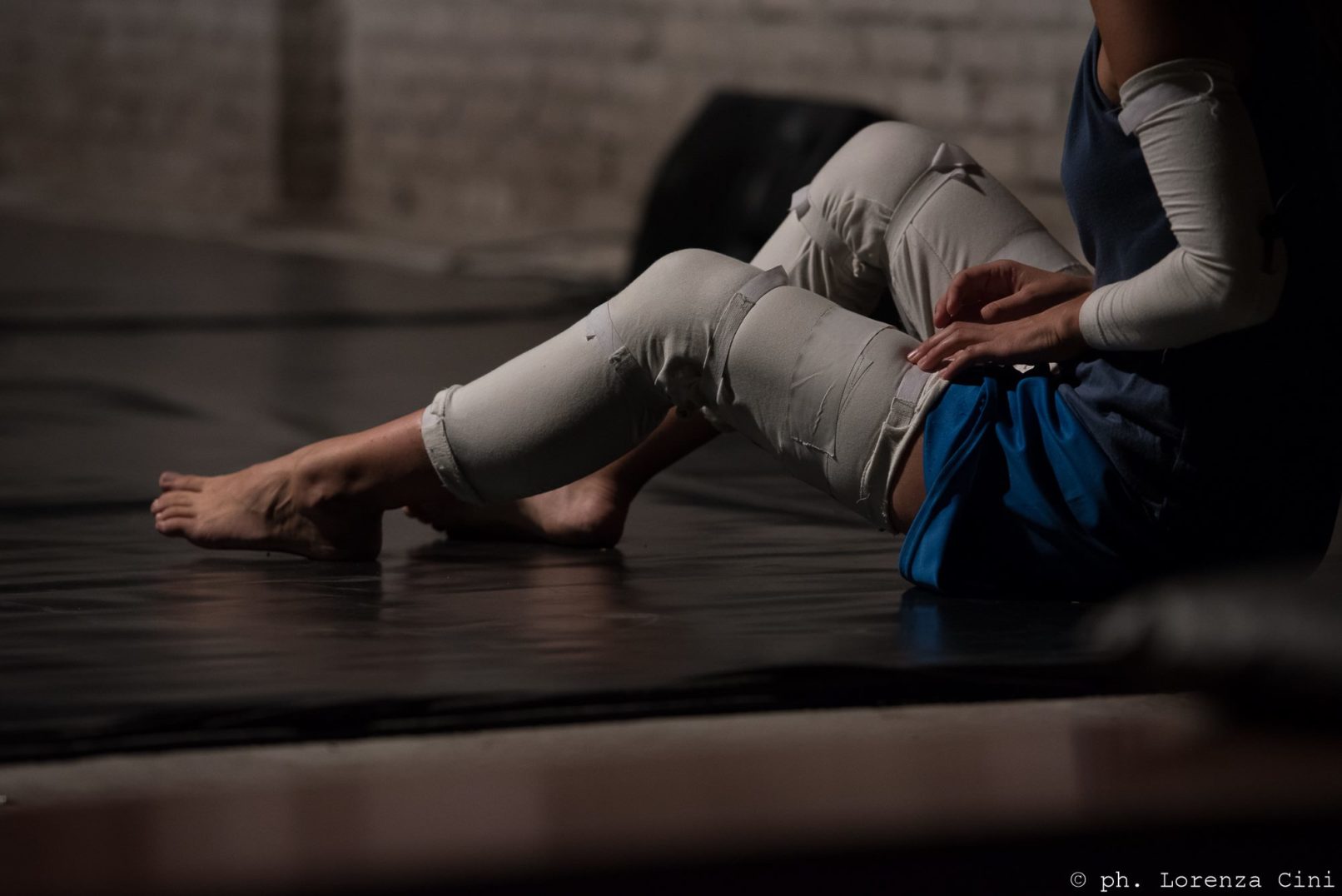 The starting point was Mazzaro’s interest in how a sound can affect our psychology and consequently our way to move. His thought was: if a movement can create a sound and it affects us through a feeling, we then create a new movement related to this feeling that produces a new sound, and go on in a perpetual iterative process. To develop this idea Marco Campana, sound designer of S’odinonsuonare, created a wearable system that allows a performer to generate sounds with movements through some flex sensors. As soon as we started to use the system some key questions raised: